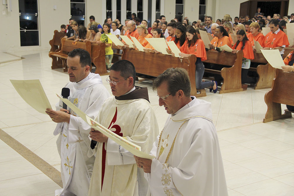 A Santa Missa foi celebrada pelo Revmo. Pe. Roberto Takeshi, EP e concelebrada pelo Pároco Pe. Wagno Leandro Ludgero e pelo Vigário Paroquial Pe. Leonir Nardi, da Paróquia Santa Luzia. Os Arautos e seus Cooperadores também participaram da bela cerimônia, durante a qual foi percebido um ambiente de contentamento e graças sensíveis.