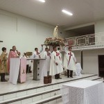 A Santa Missa do Primeiro Sábado foi celebrada pelo Revmo. Pe. Mário Sérgio Sperche, dos Arautos do Evangelho. Dois outros sacerdotes Arautos atenderem a confissões da Comunidade antes e durante a Celebração.