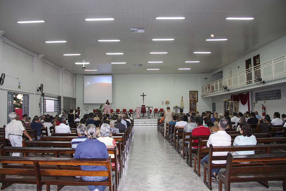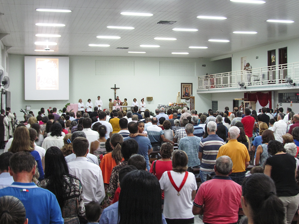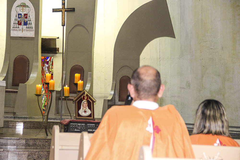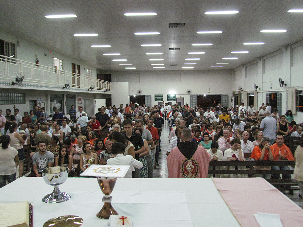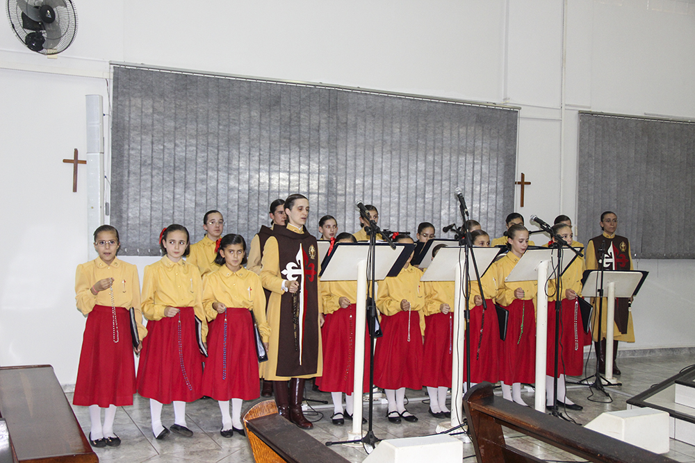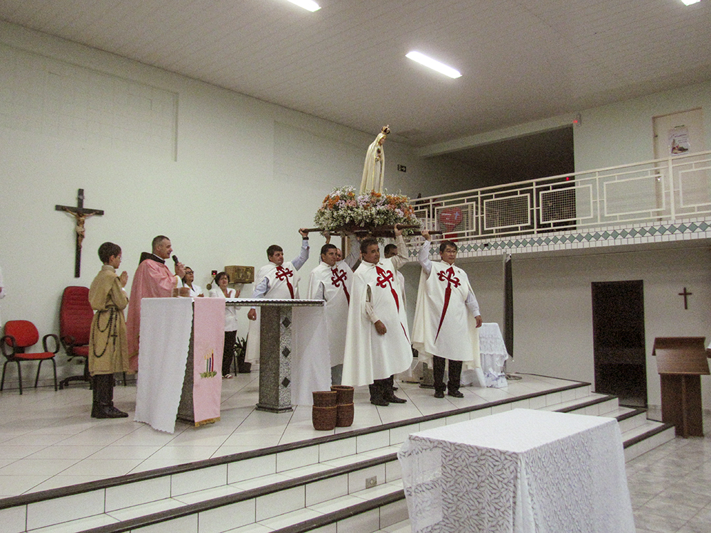 A Santa Missa do Primeiro Sábado foi celebrada pelo Revmo. Pe. Mário Sérgio Sperche, dos Arautos do Evangelho. Dois outros sacerdotes Arautos atenderem a confissões da Comunidade antes e durante a Celebração.