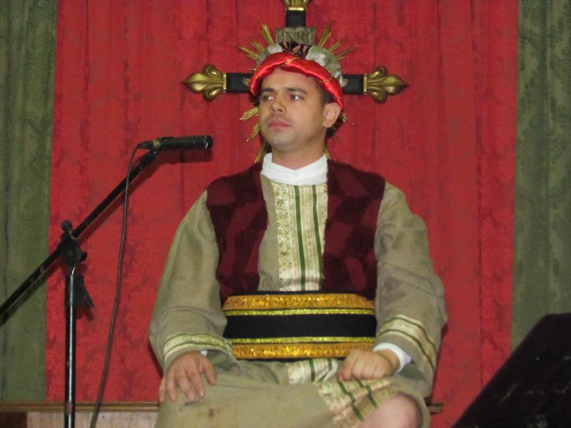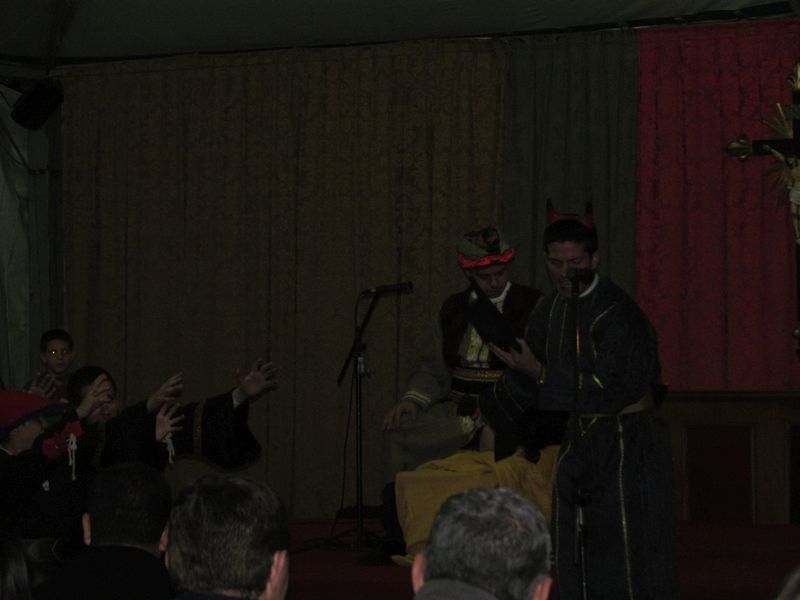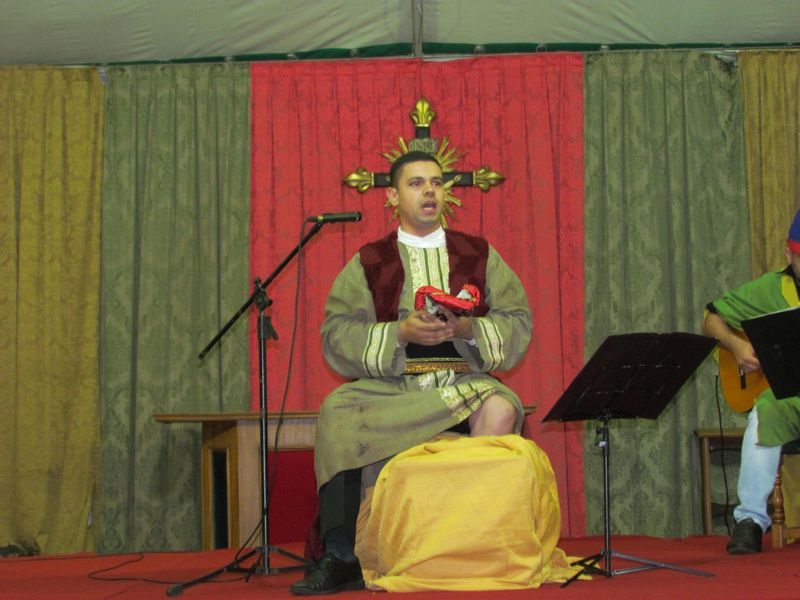 Para coroar a festa, foi apresentada uma peça teatral onde aparecia um mendigo aleijado cheio de fé e coragem, enfrentava um suposto homem rico, que oferecia-lhe dinheiro desde que o mendigo afirmasse que o culpado de seu estado desonroso, tinha um culpado que deveria ser proclamado: é Deus que por maldade te criou na enfermidade.