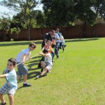Após o almoço, pais e filhos formavam as equipes para dar início a uma divertida e acirrada competição de “cabo de guerra”.