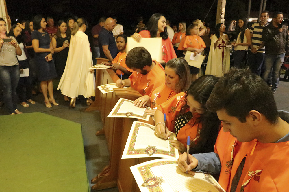 Após participarem de nove encontros consecutivos preparatórios, ao longo dos quais Nossa Senhora foi derramando abundantíssimas graças, no último Domingo, 2 de Abril, 111 pessoas realizaram a sua Consagração a Jesus Cristo, pelas mãos de Maria, segundo o método ensinado por São Luís Maria Grignion de Montfort em sua célebre obra Tratado da Verdadeira Devoção à Santíssima Virgem.