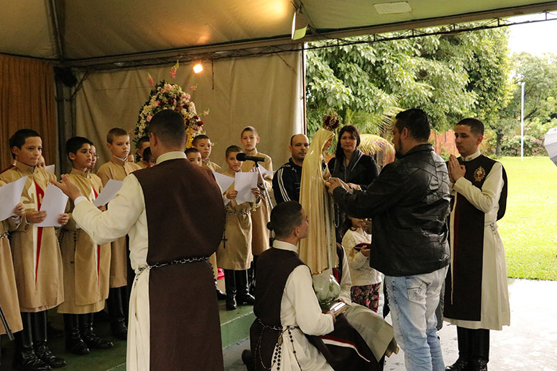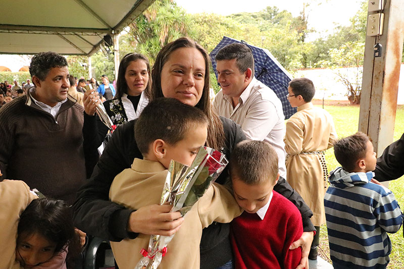 Em sinal deste agradecimento, Nossa Senhora foi solenemente coroada, sob o tenro e afetuoso cântico: “Ó Santa Mãe”. Após o mesmo, cada um dos filhos entregou uma rosa para a mãe, manifestando todo o seu carinho com um afetuoso e prolongado abraço. Uma imensa alegria inundou o coração das mães por tantos gestos extremosos de seus filhos.