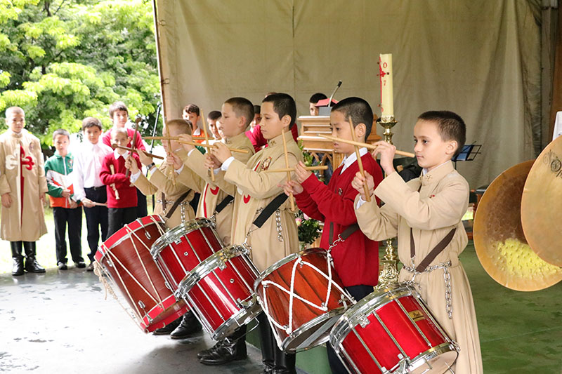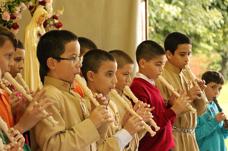 Os alunos do Colégio tocaram duas músicas com flautas e executaram um impressionante solo de percussão. Logo em seguida, recitaram um bonito poema, agradecendo a Deus e a Nossa Senhora por lhes terem dado uma mãe, que tanto fez por cada um de seus filhos.