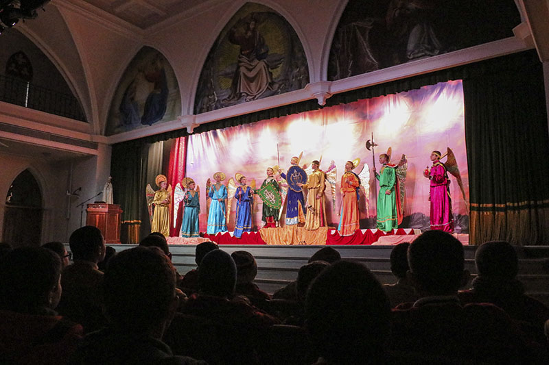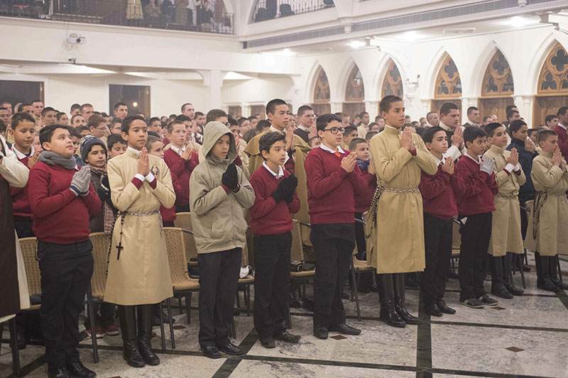 Começou com um lindo audiovisual, imaginando um Anjo que, percorrendo as magníficas obras de toda a Criação, se perguntava se não haveria alguma criatura na qual estivessem contidas todas essas maravilhas. E a encontrou: Maria Santíssima! Ela é a Rainha de toda a Criação e n’Ela estão sintetizadas todas as coisas criadas por Deus. Mas quem — continua se perguntando o Anjo — iria proteger e cuidar de Nossa Senhora? O varão que a Providência destinou desde toda a eternidade para esta missão foi o Glorioso São José!