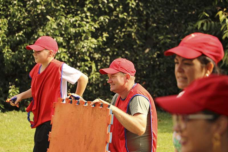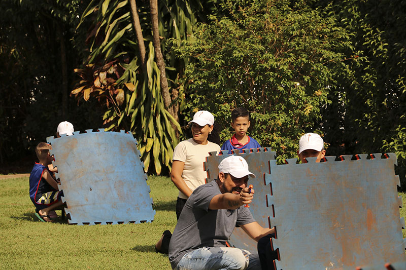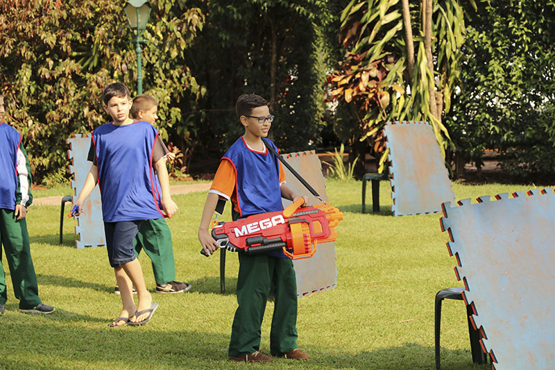 Tendo os meninos demonstrado suas qualidades musicais para os pais, restava agora a estes demonstrar suas qualidades físicas para os filhos. Para isso, houve um animado jogo: uma “inocente Guerra de Nerf”. Pais e filhos tiveram assim a oportunidade de conviver mais um domingo em família. Na realidade, eram muitas famílias convivendo juntas, sob o amparo de Nossa Senhora.