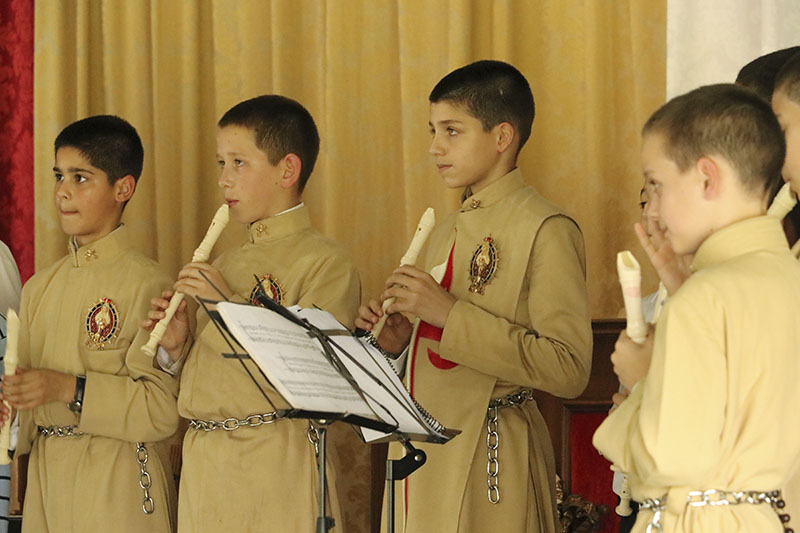 [Enquanto está terminando a segunda Ave Maria, tocam os trompetes anunciando o começo da Apresentação].