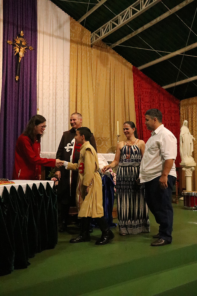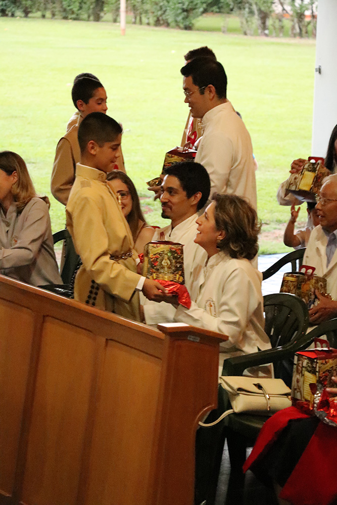 Após a Celebração Eucarística, deu início a Cerimônia de Encerramento propriamente. Os alunos do 6º e 7º Ano do Colégio Arautos do Evangelho de Maringá, sendo chamados um a um, recolheram seu respectivo boletim.
