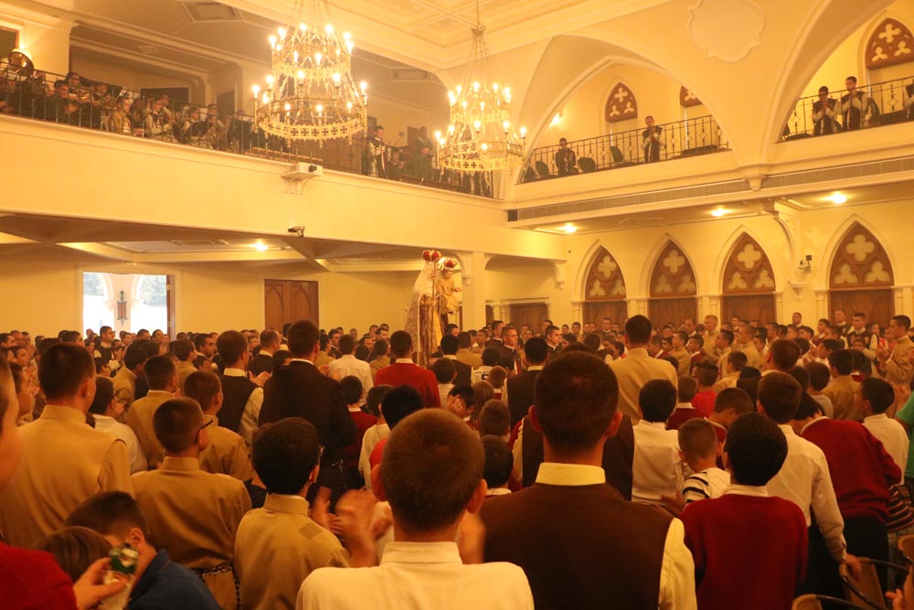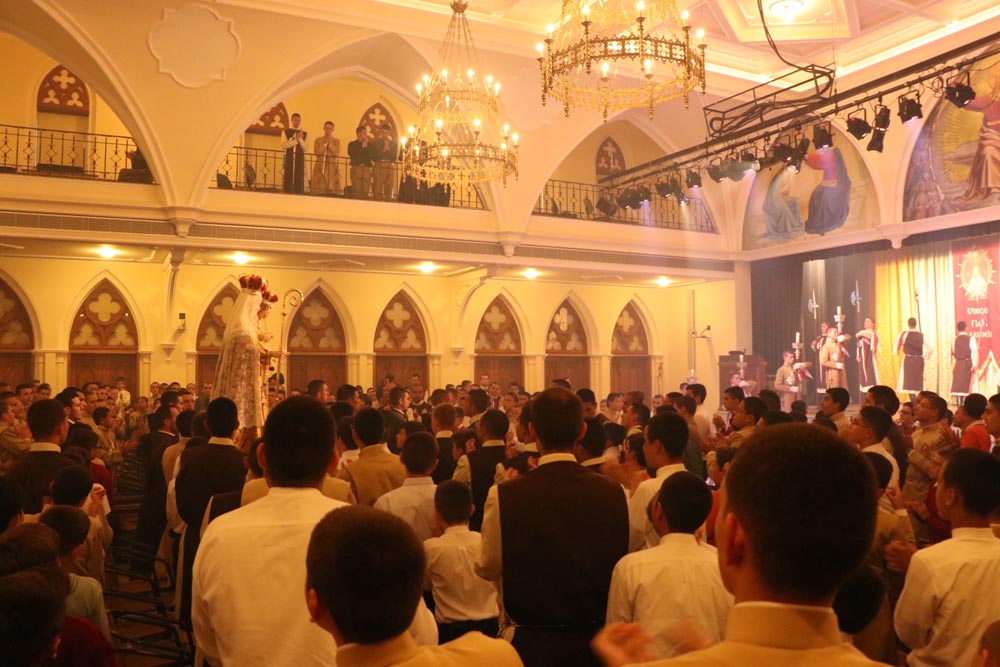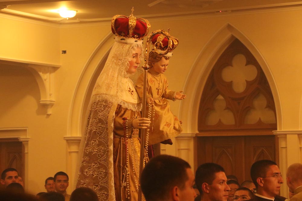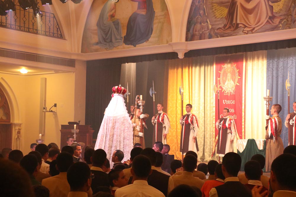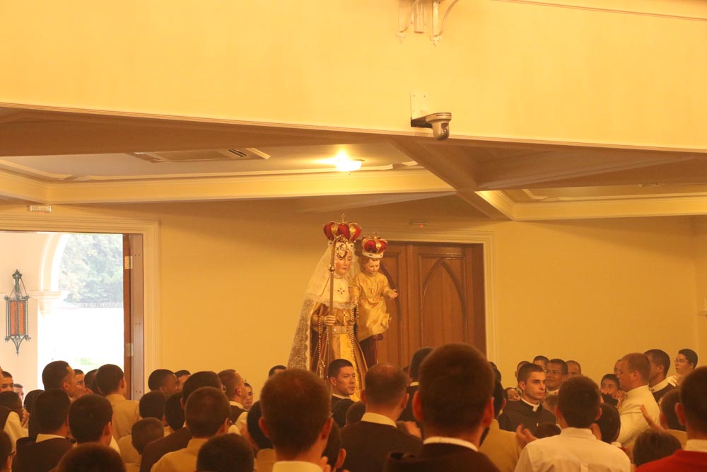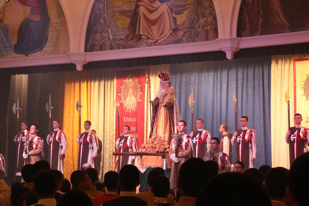 Para concluir o Curso de Férias, a rainha tão esperada entra solenemente no auditório, custodiada por tocheiros e por sua guarda. É Nossa Senhora do Bom Sucesso, que com sua presença abençoou a todos os seus filhos que participaram das reuniões dessa semana. Após as orações, uma quantidade enorme de pessoas, de fila em fila, reza diante da Rainha, agradecendo a todas as graças concedidas nesses dias em São Paulo.