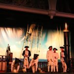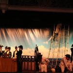 Dificuldades, dramas, tormentas, desilusões, tempestades… heroísmo! Eis o resumo dos fatos encenados no segundo dia do Curso de Férias. Abrem-se as cortinas, e os participantes se deparam com uma cena típica em convés de uma caravela: cordas pendem de um mastro à direita, balaustradas de ambos os lados, a cabine do capitão à esquerda, e, por último, um timão.