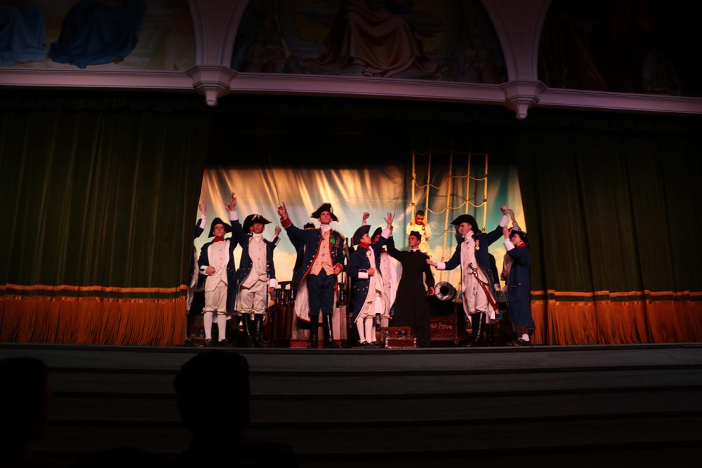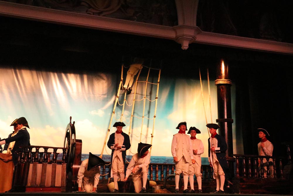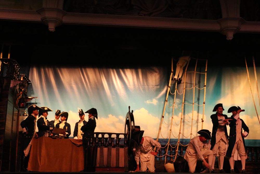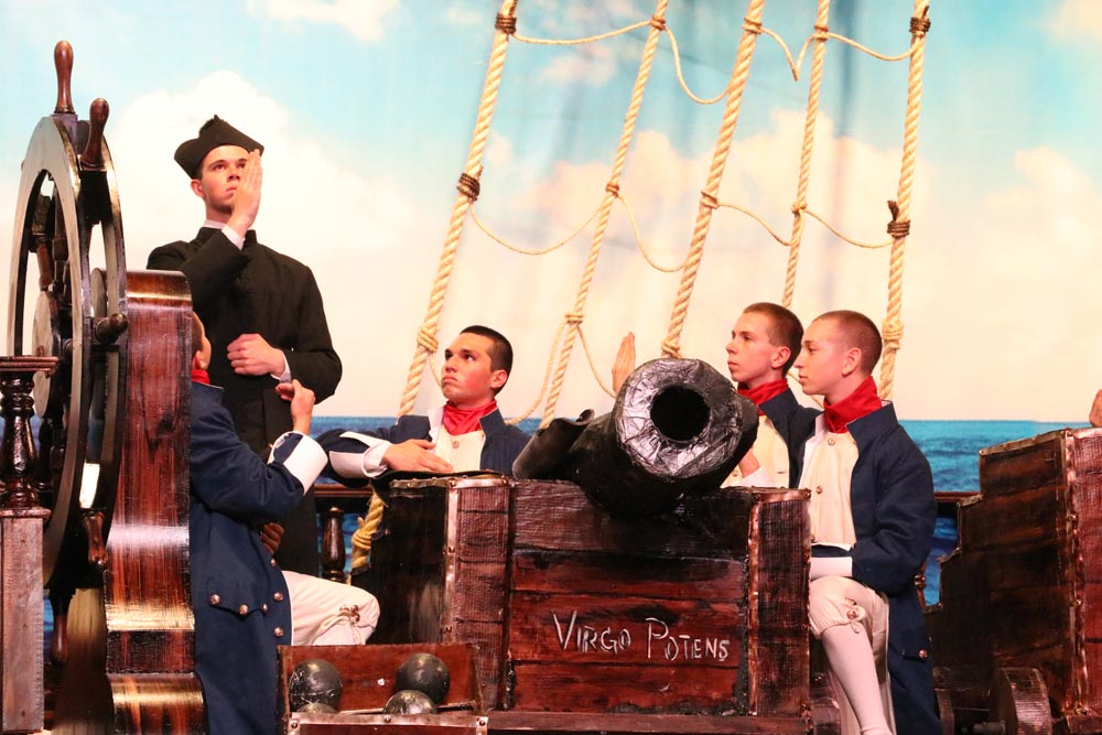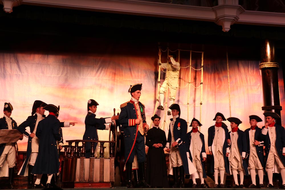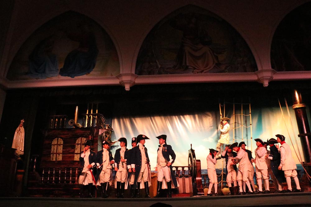 Dificuldades, dramas, tormentas, desilusões, tempestades… heroísmo! Eis o resumo dos fatos encenados no segundo dia do Curso de Férias. Abrem-se as cortinas, e os participantes se deparam com uma cena típica em convés de uma caravela: cordas pendem de um mastro à direita, balaustradas de ambos os lados, a cabine do capitão à esquerda, e, por último, um timão.