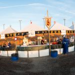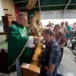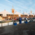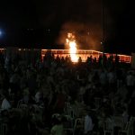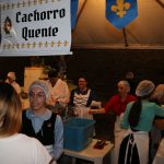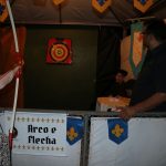 Terminada a Santa Missa, o Revmo. Pe. Mário procedeu à bênção do fogo e, na sequência – para surpresa e alegria geral – um Cavaleiro Medieval chegou, devidamente montado, trazendo o belo estandarte de São Pedro e dando oficialmente o tom do tema medieval da festa Julina.