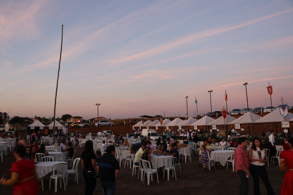O estandarte de São Pedro foi hasteado no mastro principal, ao centro das barraquinhas típicas. Esses atos iniciais das festividades foram iluminados com uma bela queima de fogos de artifício, que puderam ser vistos a uma distância considerável. Na sequência, uma bela apresentação musical performada pela banda dos Arautos do Evangelho deu início aos festejos e todos puderam se dirigir à degustação das comidas e bebidas típicas.