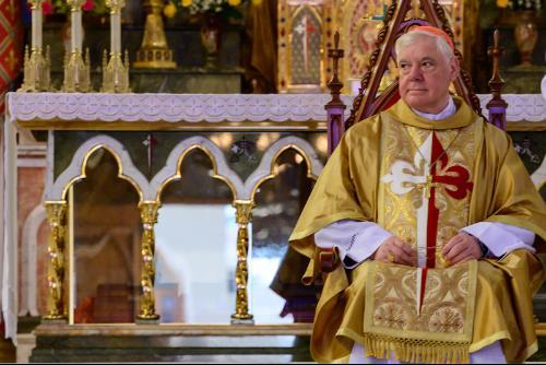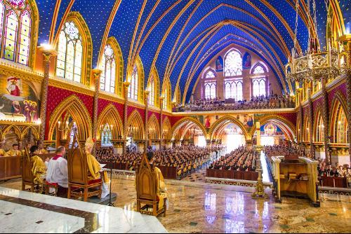 A Santa Missa foi celebrada pelo Cardeal Müller, na Basílica de Nossa Senhora do Rosário, com a participação de grande número de membros dos Arautos do Evangelhos e fiéis que lotavam o templo. A igreja faz parte do conjunto de edifícios no qual se encontram o Seminário da Sociedade Clerical Virgo Flos Carmeli e a Casa de Formação dos Arautos do Evangelho.