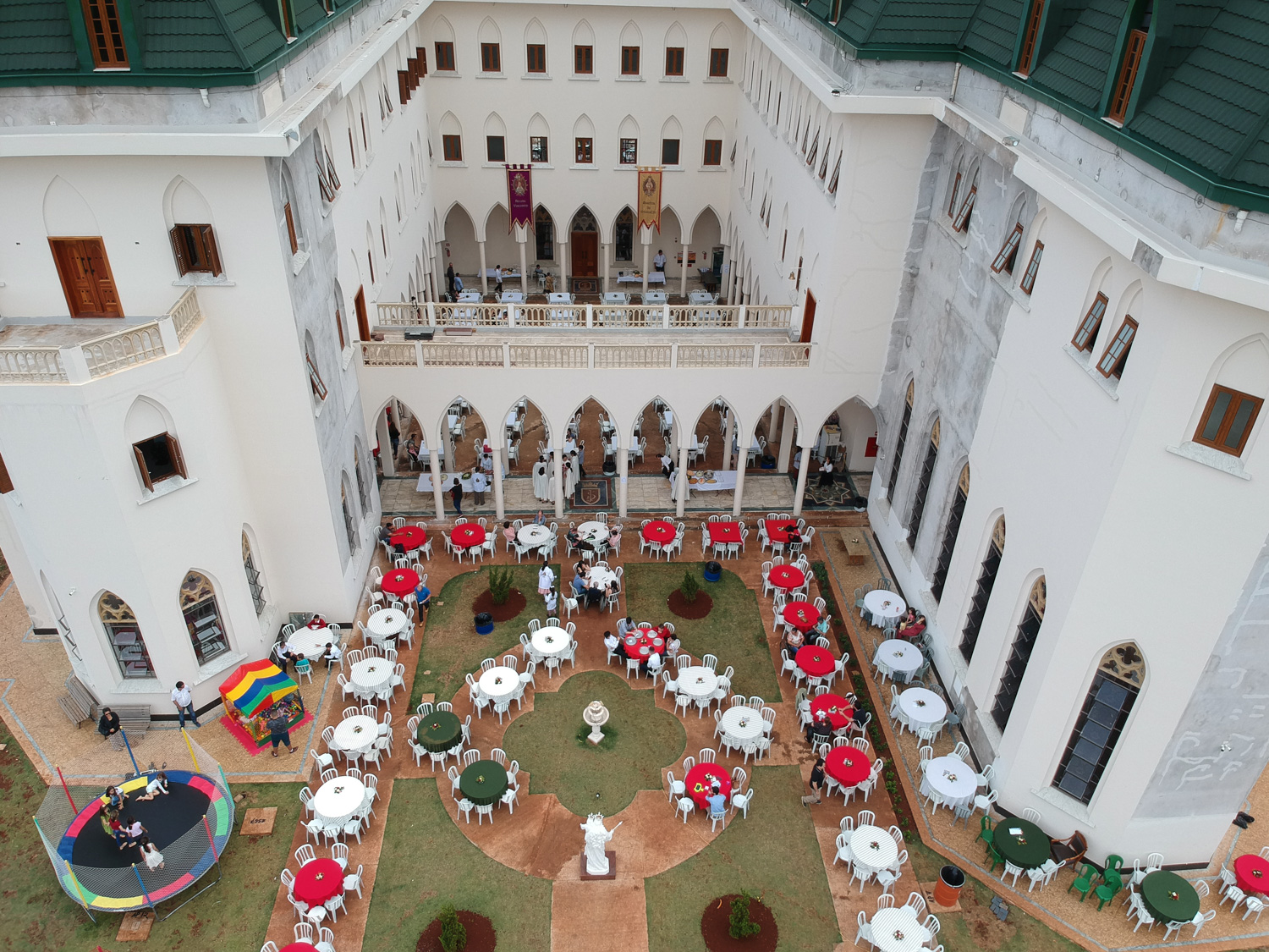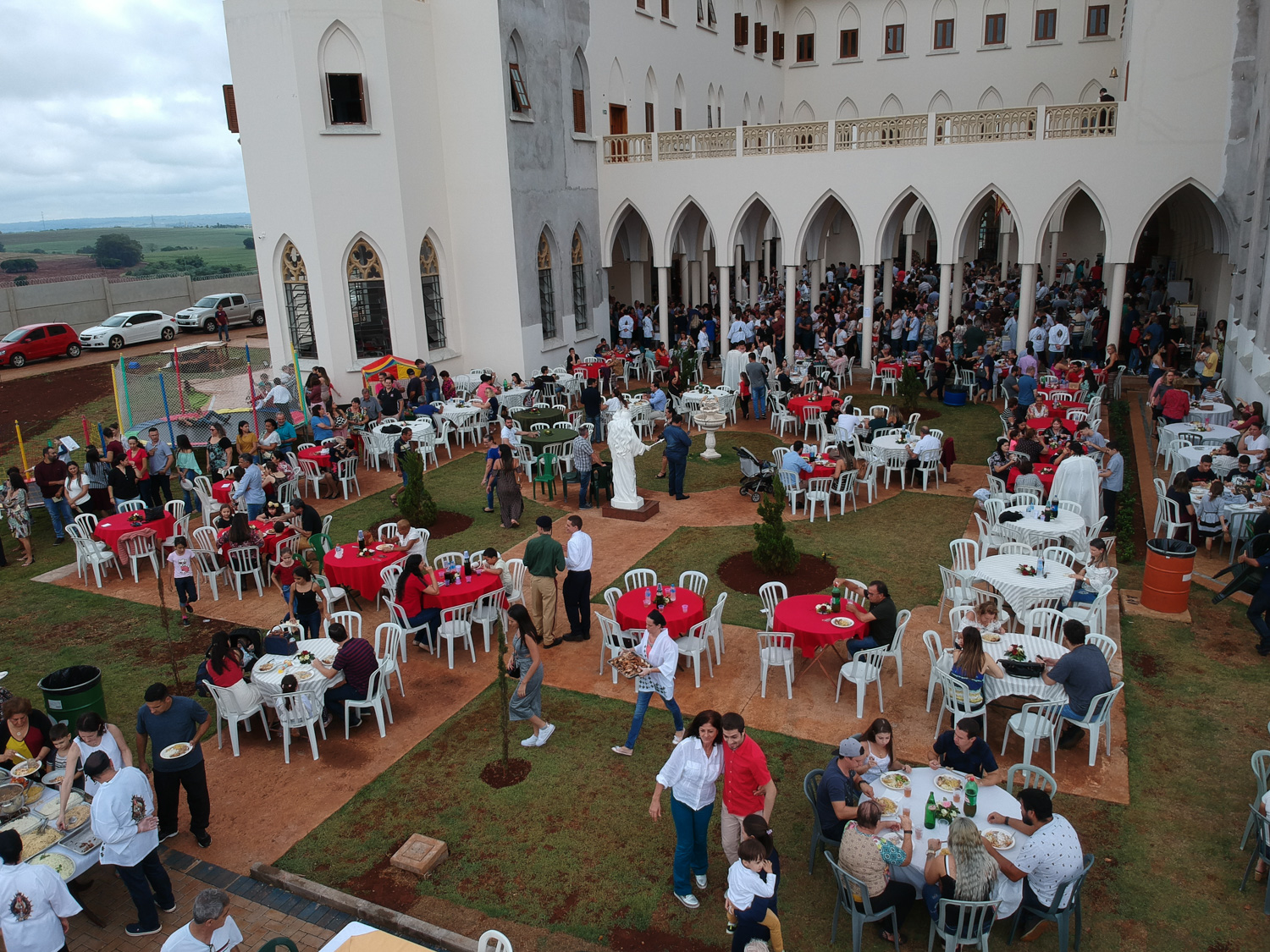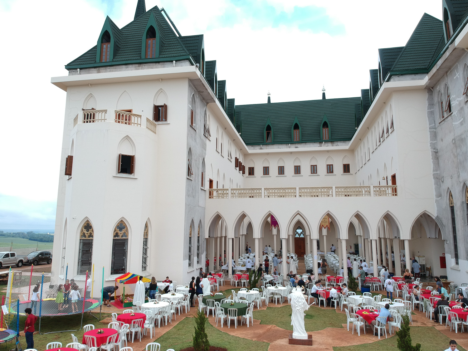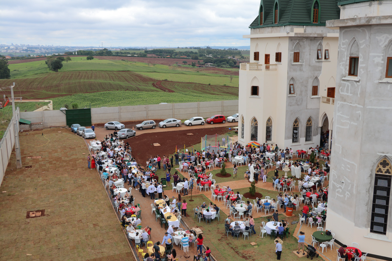 Assim, no dia 12 de Maio, Domingo, Dias das Mães, iniciando a programação com a celebração da Santa Missa, os Arautos puderam receber em seu Mosteiro o impressionante número de quase 2.000 pessoas que para lá se deslocaram, para almoçar, num clima de convívio fraterno, aproveitando para conhecer o ambiente interno do tão divulgado “Castelo” dos Arautos. Evidentemente, atender a essa quantidade de público exigiu – novamente – extrema dedicação dos voluntários e muita organização logística. Houve fila de espera no almoço – obviamente – mas nada superior às filas que comumente se encontram nos restaurantes no Dia das Mães. Além do mais, os convidados foram brindados com um magnífico concerto musical, executado pelos Arautos de Maringá e aspirantes, o que deixou a atmosfera impressionantemente amável e angelical!