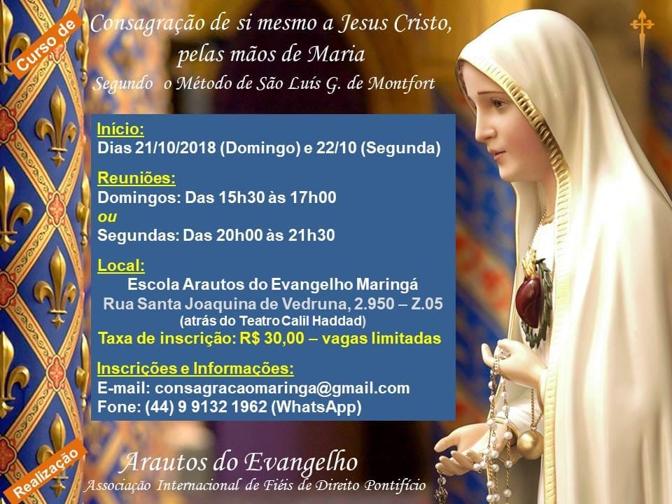 O próximo sábado, dia 02 de Fevereiro, será o primeiro sábado do mês! Os Arautos do Evangelho de Maringá promoverão a Comunhão Reparadora dos Primeiros Sábados, atendendo aos apelos de Nossa Senhora, na Mensagem de Fátima.