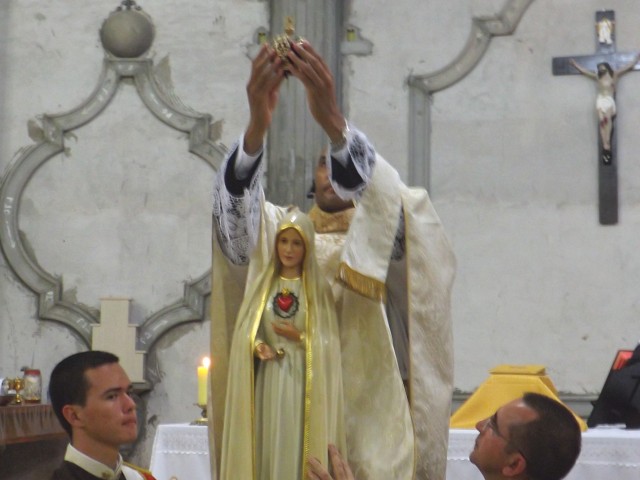 Foi uma Celebração cumulada de bênçãos e graças pela Santíssima Virgem, a qual foi esplendidamente coroada como Rainha da Paróquia Santa Rita de Cássia. O Celebrante, representando todos os fiéis coroou a fronte da imagem peregrina do Imaculado Coração de Maria. Todos estavam muito emocionados, aplaudindo com calor e entusiasmo a Rainha dos Corações.