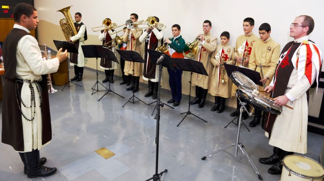 O coro e banda dos Arautos do Evangelho de Maringá estiveram presentes, executando melodias para o cerimonial e fazendo uma apresentação no final do evento, com músicas eruditas, número de percussão e uma homenagem especial aos Guardiões formandos através do canto de uma adaptação do “Luar do Sertão”, popular música brasileira, com a letra adaptada – a qual pode ser acompanhada no final deste Post – mostrando a importância da missão recebida por estes membros privilegiados da juventude de nosso País.