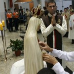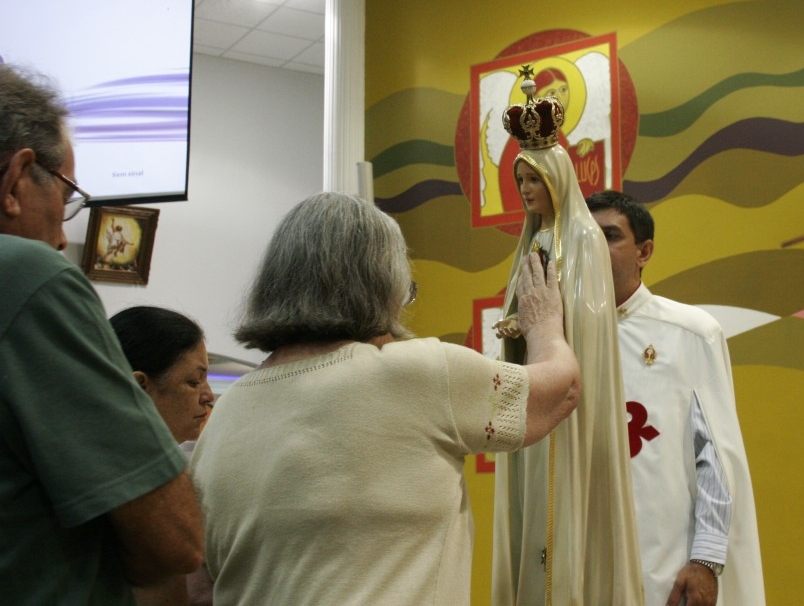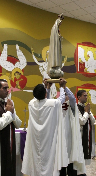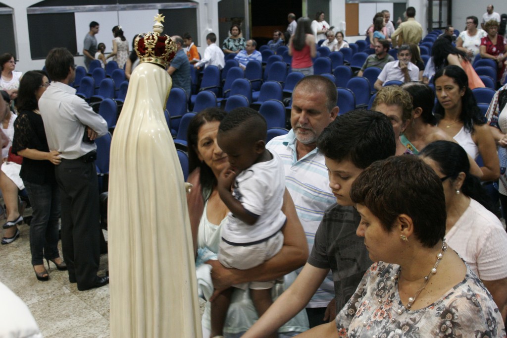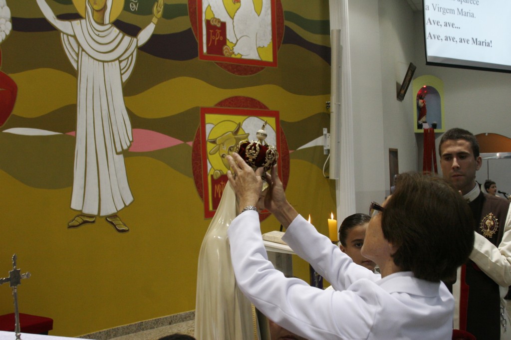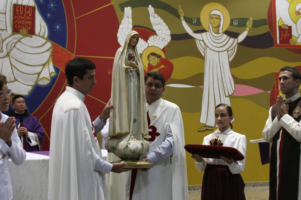 Conforme havia sido divulgado anteriormente neste mesmo Blog, ocorreu no Primeiro Sábado deste mês de março uma solene cerimônia na Paróquia Nossa Senhora da Liberdade, por ocasião da prática da Comunhão reparadora dos cinco primeiros sábados, pedida pela Santíssima Virgem em Fátima. As atividades começaram com o atendimento de confissões, seguido pela meditação de um dos mistérios do Rosário e a oração do Terço. Às 19h teve início o Santo Sacrifício da Missa, presidida pelo Revmo. Pe. Roberto Takeshi Kiyota, EP, com a solene coroação da imagem de Nossa Senhora de Fátima. A Cerimônia foi animada pelo coro dos Arautos.