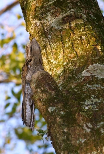 Trata-se do Urutau, ave sui generis que também quis fazer parte da família, vivendo tranquilamente em uma aconchegante árvore do jardim. Apresenta características muito interessantes, como a camuflagem e a estabilidade. Sim, e por isso foi um pouco difícil de encontrá-lo, pois é idêntico ao tronco da árvore em que vive. Durante o dia fica estático, mas à noite sai para a caçada, emitindo um interessante canto, parecido com uma flauta doce que toca os arpejos das escalas musicais, do agudo para o grave. Mas não foi apenas agraciado com esses dotes físicos. Além disso, podemos contemplar no Urutau realidades mais elevadas.